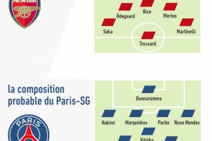体育资讯4月29日讯 北京时间明天凌晨,阿森纳与巴黎将在欧冠半决赛首回合比赛中展开较量,法国媒体《队报》预测了两队的首发阵容。
